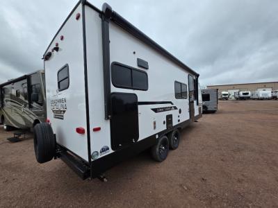 Sleeps 3 Slides 1 Length 25 ft 6 in Ext Width 7 ft 6 in Ext Height 10 ft 1 in Int Height 6 ft 6 in Hitch Weight 684 lbs GVWR 7221 lbs Dry Weight 5221 lbs Cargo Capacity 2000 lbs Fresh Water Capacity 38 gals Grey Water Capacity 30 gals Black Water Capacity 30 gals Furnace BTU 19000 btu Available Beds Queen Refrigerator Type GE 12V Refrigerator Size 10.7 cu ft Cooktop Burners 2 Shower Size 24" x 32" Number of Awnings 1 LP Tank Capacity 20 Water Heater Type Tankless On Demand AC BTU 13500 btu Awning Info 17' Electric with Multicolored LED Light Strip Axle Count 1 Number of LP Tanks 1 Shower Type Standard Electrical Service 30 amp