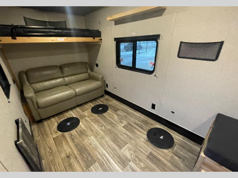 Sleeps 5 Length 22 ft Ext Width 8 ft Exterior Color Black Onyx, Snow White, Pewter, Copper, Medium Charcoal, Yellow, Orange, Red, Brandywine, Shamrock Green, Glacier Blue, Navy Blue Hitch Weight 1025 lbs GVWR 10000 lbs Dry Weight 6600 lbs Fresh Water Capacity 30 gals Grey Water Capacity 21 gals Black Water Capacity 12 gals Furnace BTU 30000 btu Number Of Bunks 2 Refrigerator Type 12V Refrigerator Size 4.5 cu ft Cooktop Burners 3 Number of Awnings 1 LP Tank Capacity 30 lbs AC BTU 13500 btu Awning Info Power Axle Count 2 Number of LP Tanks 2 Shower Type Neo-Angled Similar Floorplans